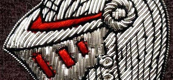 Picture below: Detail of our work. Handwork in silk and silver thread
