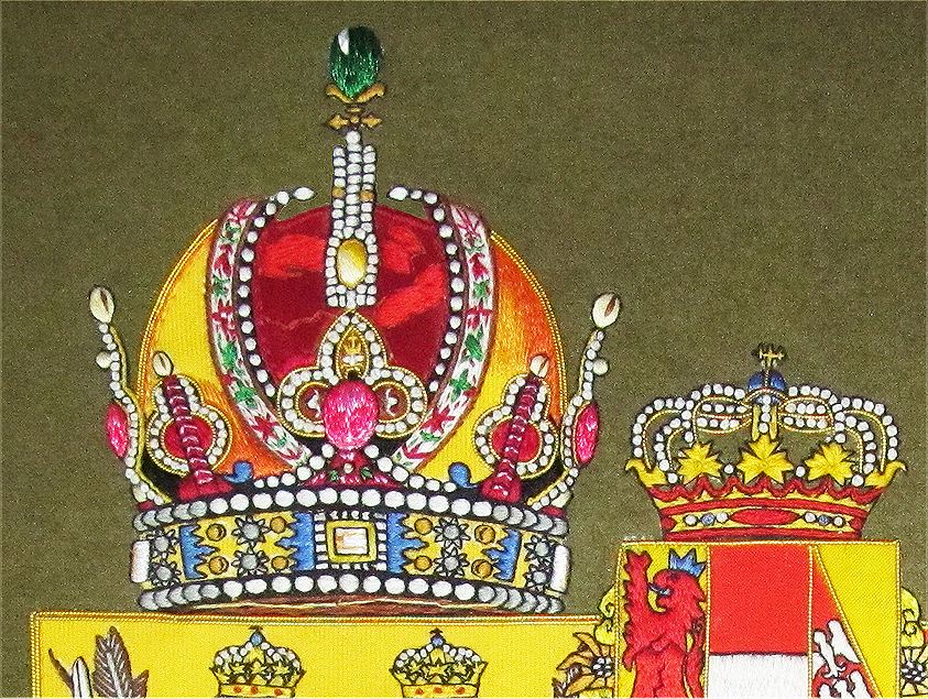 One of the crests to be embroidered was the historic Austria-Hungary coat of arms, based on the House of Habsburg Empire.