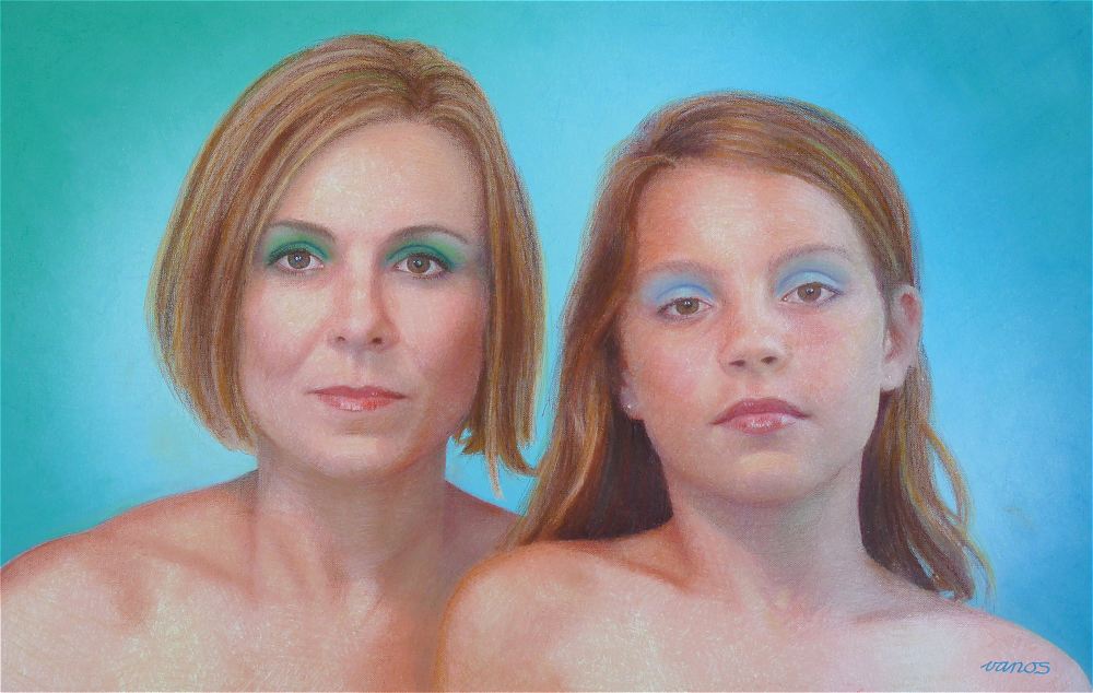 Our condo has been decorated with blues and greens to mimic the colors of the Gulf of Mexico. I will work these colors into the painting's background and the girls' eye shadows (Kaila is 10, going on 21). |