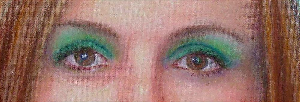 I gave the girls over-the-top eye shadow colors, "reflected" from the new background.