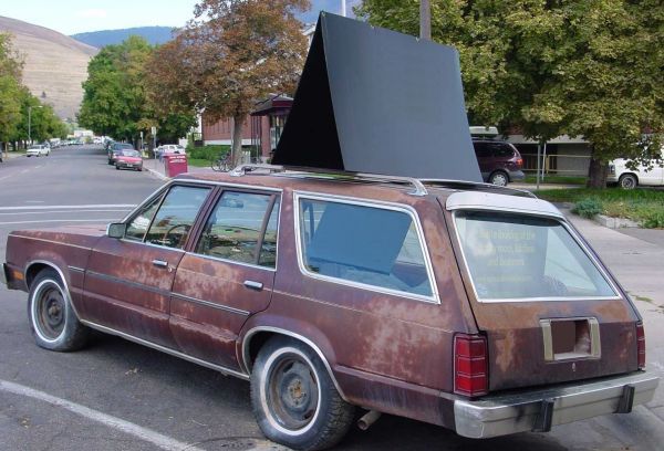 I took a pic of an old car, and photoshopped a blank sign on it.
