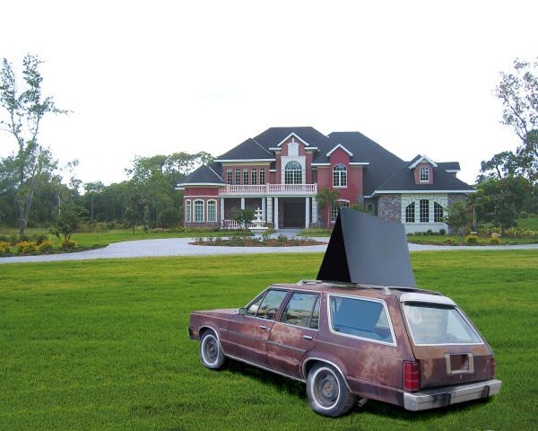 Then I photoshopped the car on the front lawn. Big contrast already. Now I need some